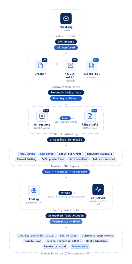 | Domain | brasilmotorsvs14[.]com | C2 WebSocket principal (Cloudflare) |